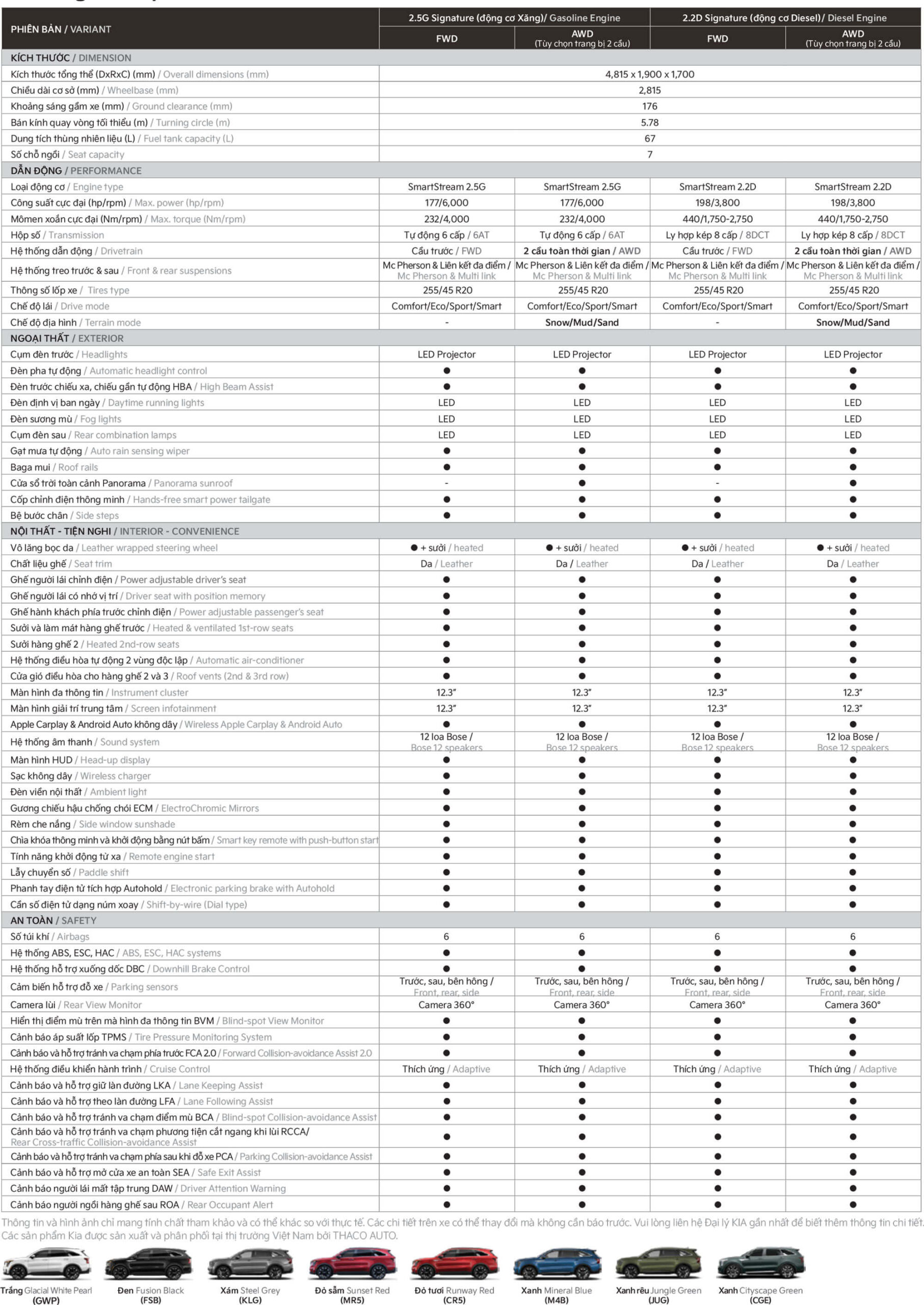 • New Sorento 2.5G Signature FWD​: 1.249.000.000 VNĐ